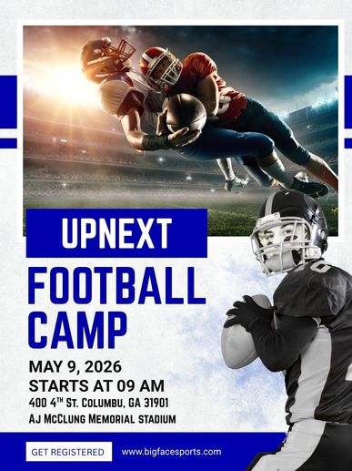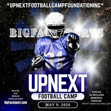 MAY 2026 UPNEXT Football CAMP FEATURING 20 different college couches attending. You don’t want to miss this camp. Some of the top coaches in the area giving you the real knowledge on each position. Make sure you mark this day on your calendar tickets will go on sale Jan. There will be a sale out.