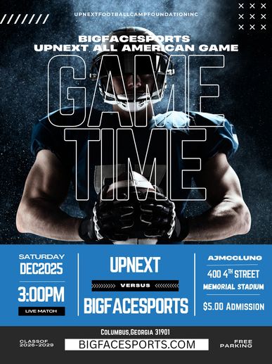 The BigFaceSports UPNEXT ALL AMERICAN GAME is scheduled for December 6, 2025, at Aj McClung Memorial Stadium in Columbus, Georgia. Here are the event specifics¹ ²: